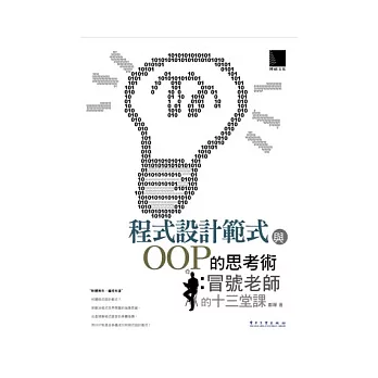 本書共有十三個章節,前六章為上篇,後七章為下篇。上篇以程式設計範式為出發點,深入分析各種程式語言的本質、特性、意義、優缺點,破除一般人對於程式語言的迷思。下篇則以抽象機制為出發點,徹底剖析物件導向程式設計的三大特性 ─ 封裝、繼承、多型,引領讀者真正掌握OOP的思考術,並將這些觀念延伸到設計原則與設計模式中。