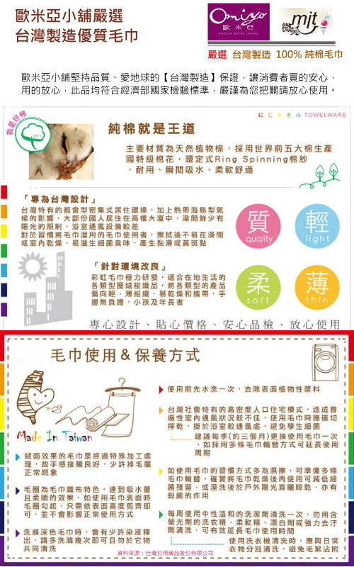 商品訊息簡述: 採用100 純棉 給您最天然 最舒適的沐浴品質 高品質 台灣製造毛巾 網路直營最低價 種類 毛巾主要材質 100 純棉材質說明 100 純棉顏色 多色組合花色圖案 幾何入數 12條尺